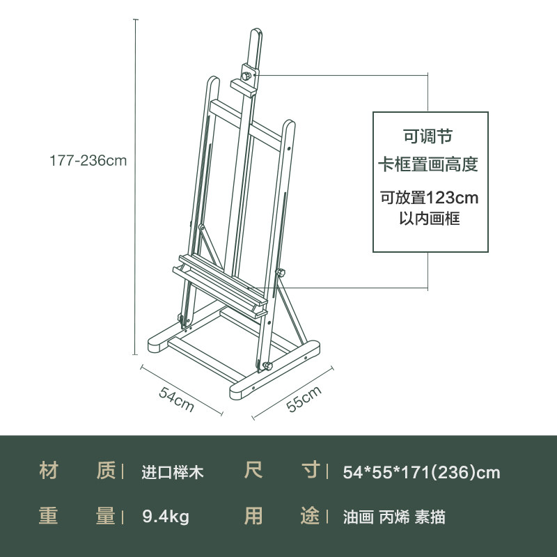 Shuangfeng German imported beech floor-to-ceiling easel National Painting Rack Advertising Campaign Exhibition Stand booth Adult painter painting special easel Wood solid wood display stand foldable lifting easel