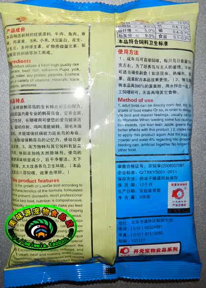 Recent production and delivery of Kaiyuan brand 5 bags of mynah bird food mynah feed mynah mynah magpie bird food
