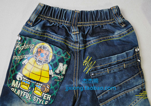Small building blocks 01221 boys fashion handsome jeans long pants autumn winter child clothing partial thickness quality good 100-165 yards