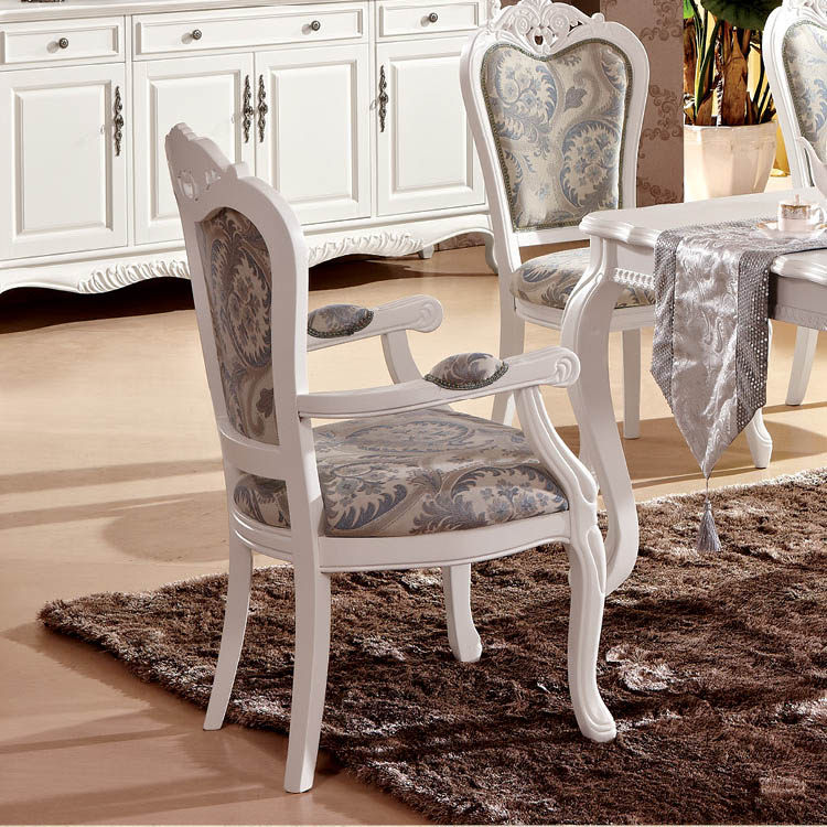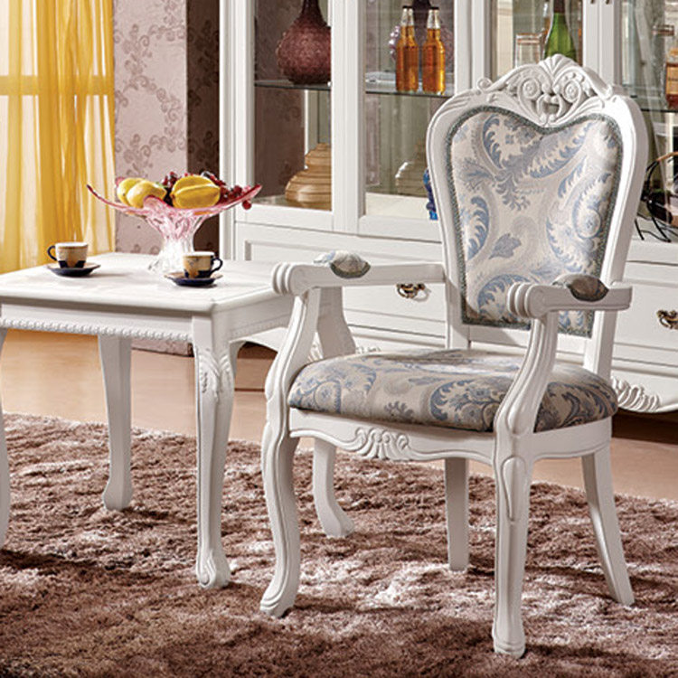 European style dining chair archaize white dining table and chair solid wood garden cloth art armchair French back desk chair