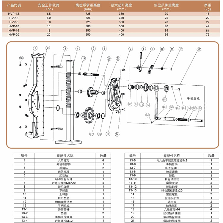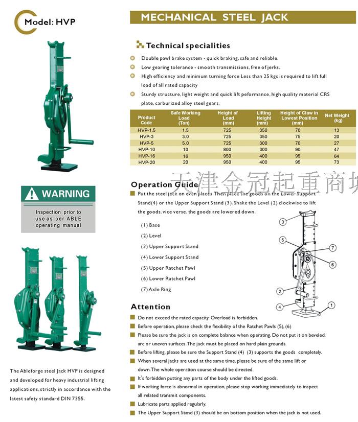Eperle ABLE mechanical jack handsatchel jacking up the road machine HVP1 5t3t5t10t16t20 tons