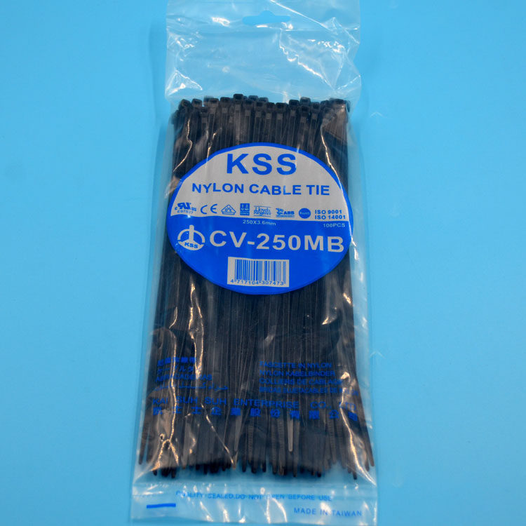 Direct sales Taiwan kss cable tie CV-250MB black 4x250mm kss cable tie 100 wrapped wire harness cable tie