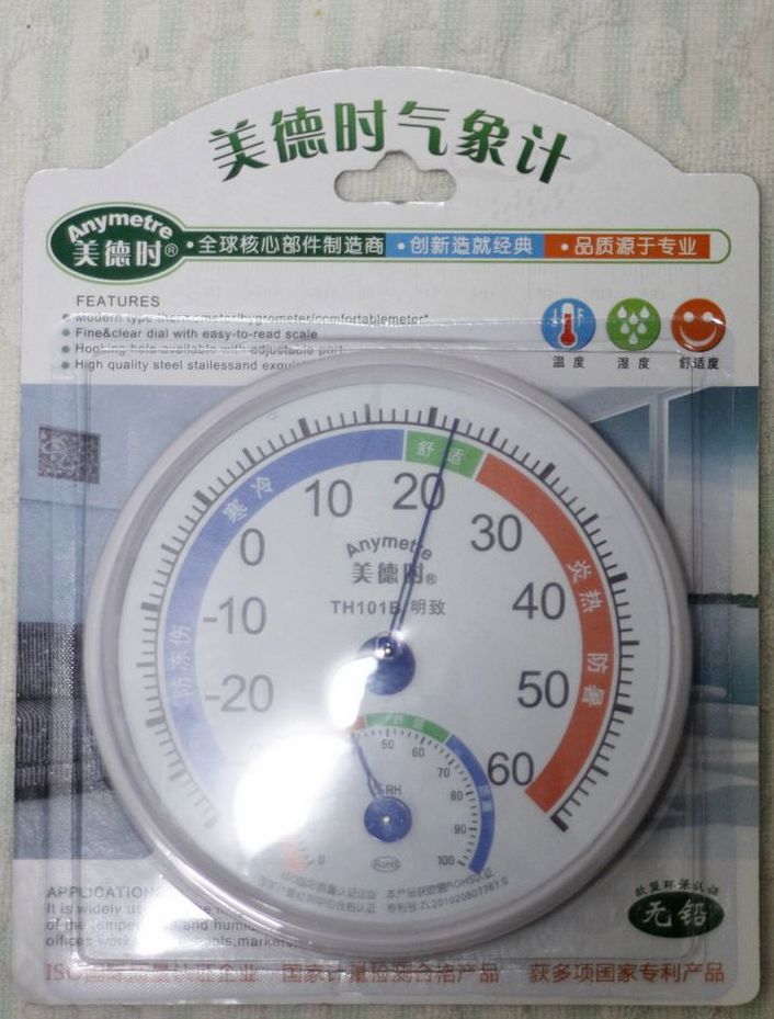 Virtue time temperature and humidity meter hanging household with bracket lead-free environmental protection TH101B Mingzhi temperature and humidity meter