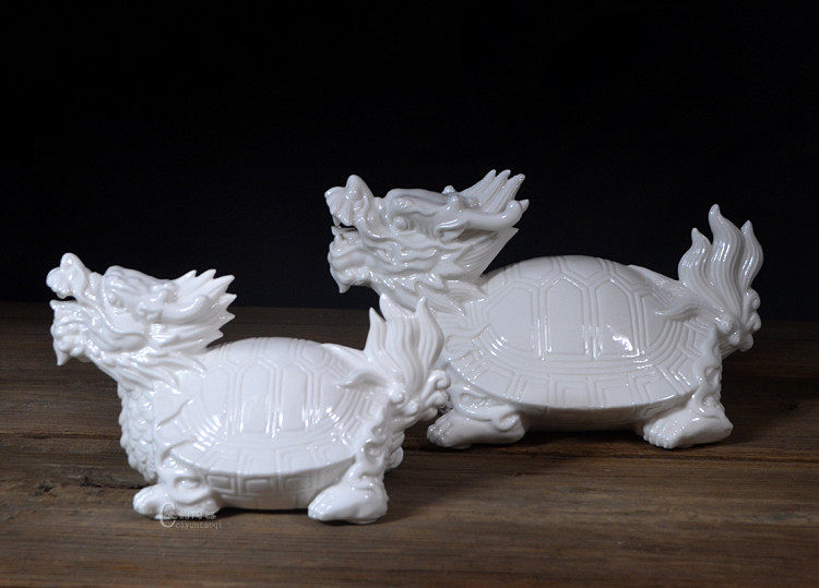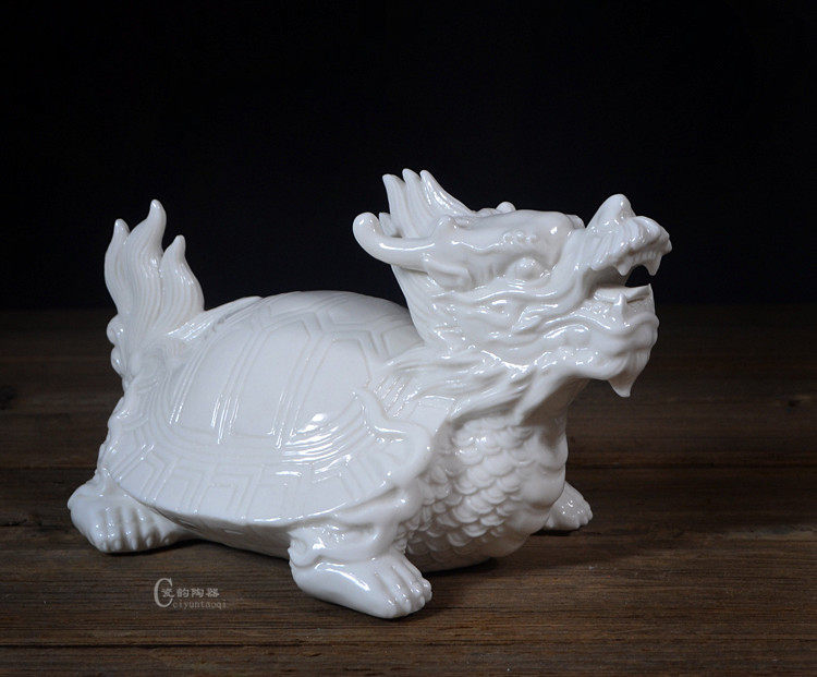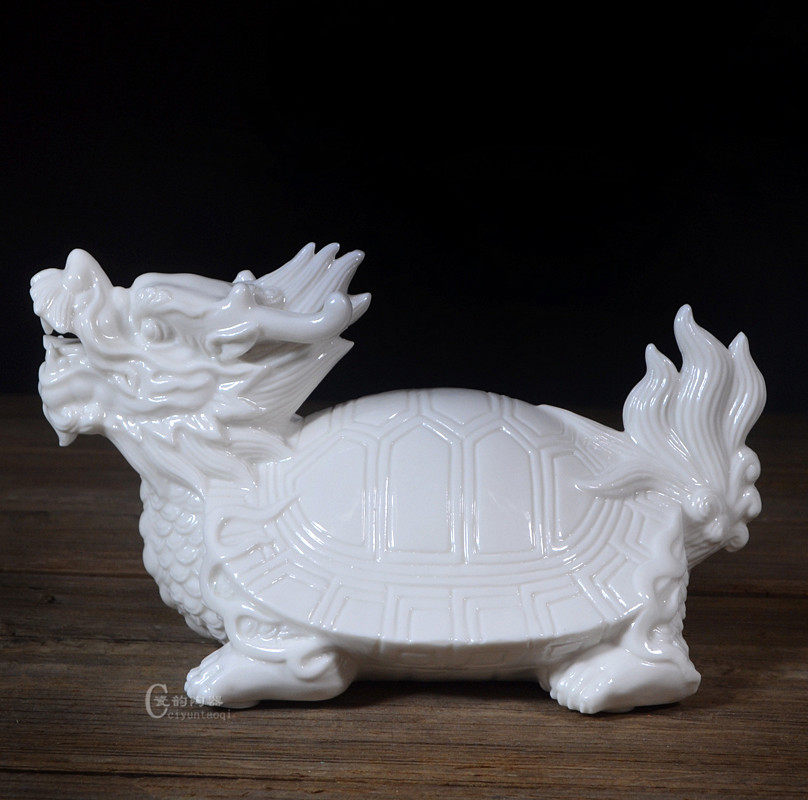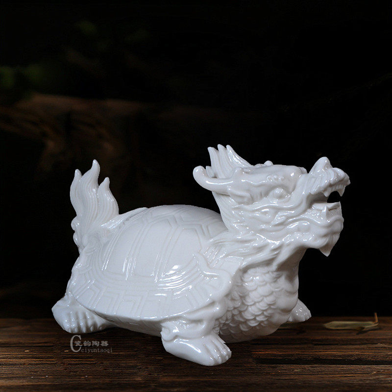 Ceramic lucky dragon turtle ornament white porcelain Feng Shui mascot Home craft gift ornament Money Turtle lucky town house office