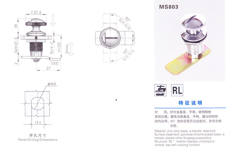 MS803 Turn Cam Lock Push Button Rotary Electric Cabinet Door Lock Metal Cabinet Cylindrical Lock Industrial Chassis Cabinet Lock