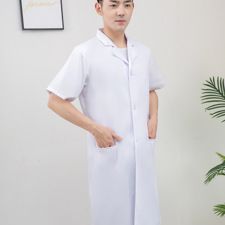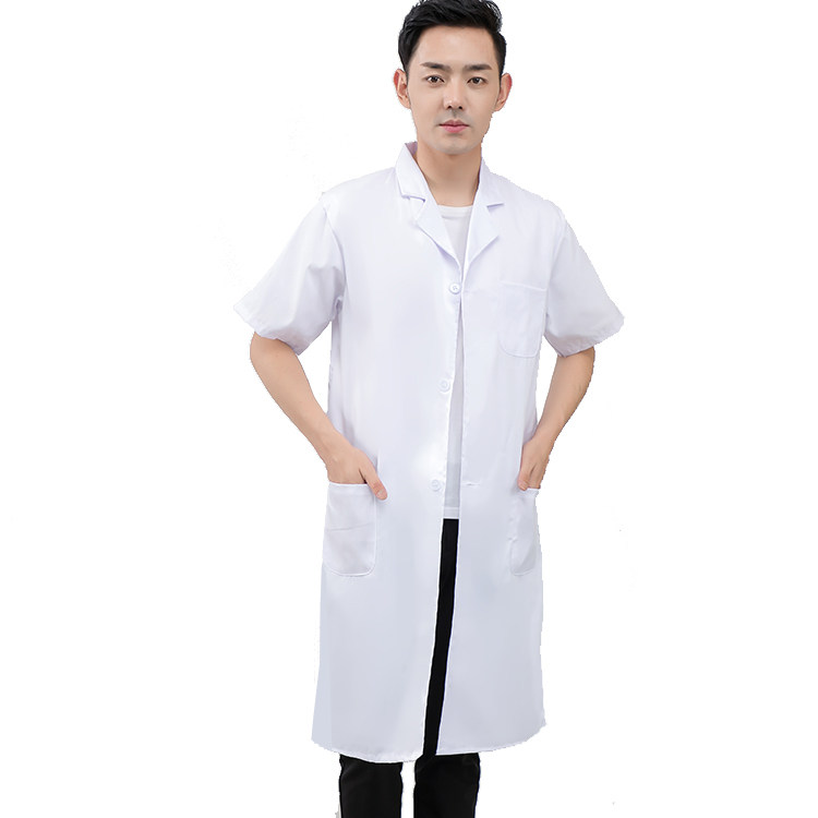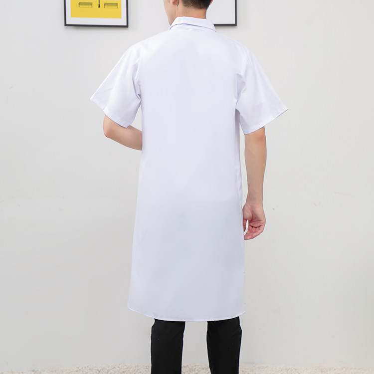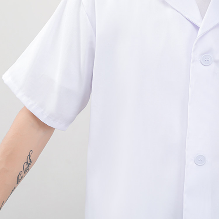 Short-sleeved white coat hotel food factory clothing polyester card cloth men and women summer work clothes robe student lab coat