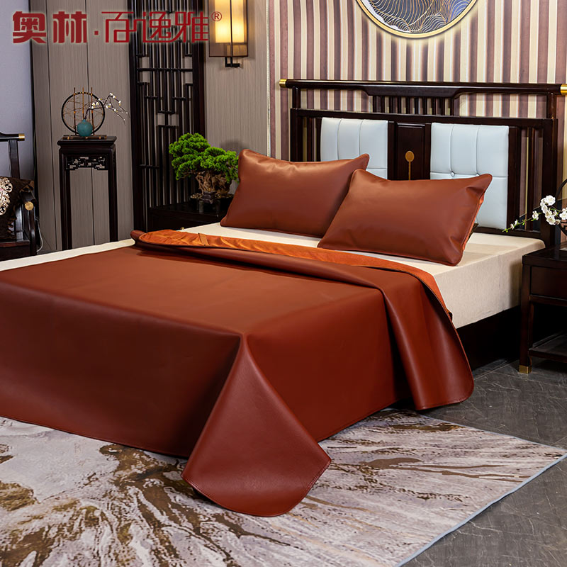 Olin cowhide cool mat first layer buffalo leather Baiyiya cowhide mat three-piece set 1 8m leather summer high-end mat