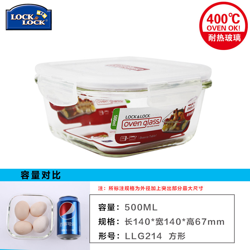 Music Buckle Music Buckle Microwave Oven Glass Preservation Box Lock Box Lunch Box Lunch Box Square LLG214 500ml-Taobao