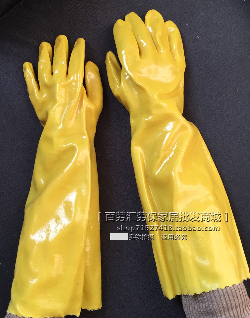 Millennial 045 lengthened thickened cotton wool soaked plastic gloves oil-resistant acid-base labour rubber waterproof 28 35 45CM