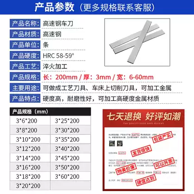 High-speed net turning knife 200*3mm flat turning knife blade wear-resistant hrc60 hardness wide 6-8-35-45 white steel strip hss