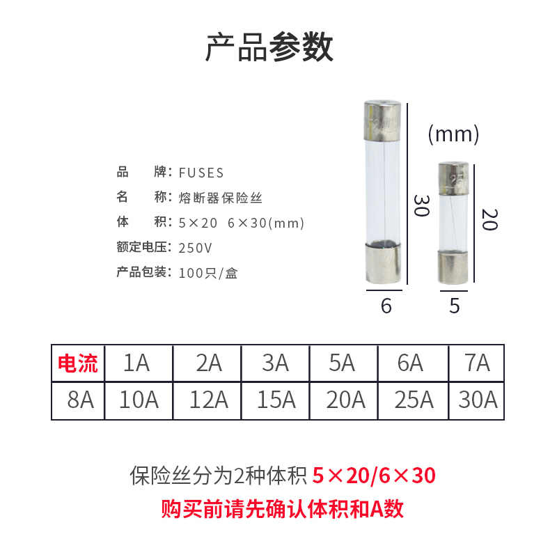 6*30mm glass tube fuse tube F1A 2A 3A 5A 6A 8A 10A 20A 30A fuse