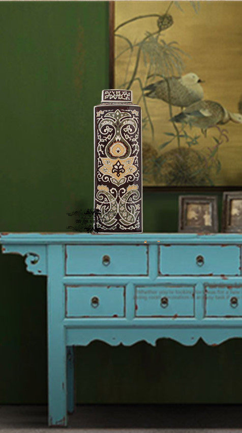 New European retro Southeast Asian style ceramic storage tank home accessories vase decoration soft decoration
