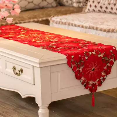 Tea table towel table flag European table flag dining table fabric festive wedding embroidery cover flower big red TV cabinet flag