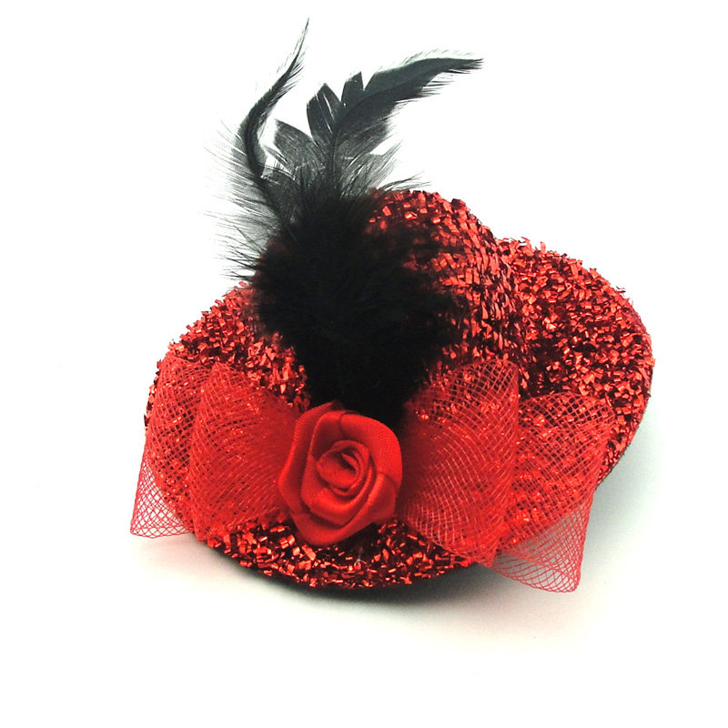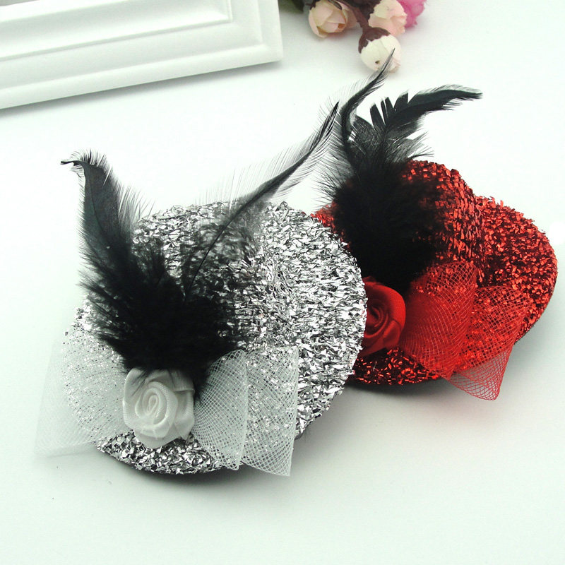 Stage Ornament Watch Performance Small Hat Hair Clip Shiny Feather Small Gift Hat Hair Adorned South Korean Version Headwear Press Clip 10CM