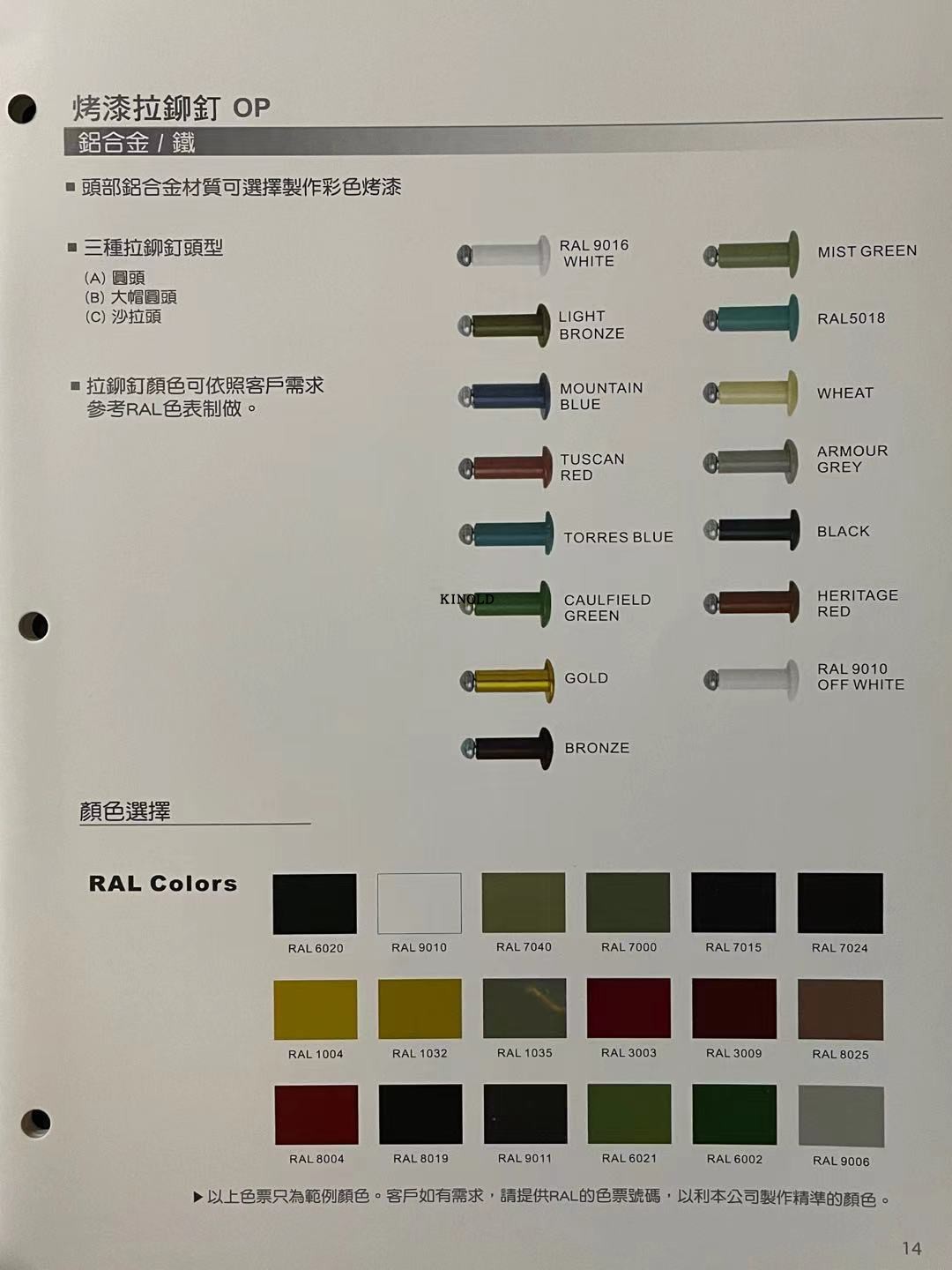 Jinghe brand round head M2 4 2 8 3 0 black aluminum pull stud color pull rivet blind rivet factory direct sales
