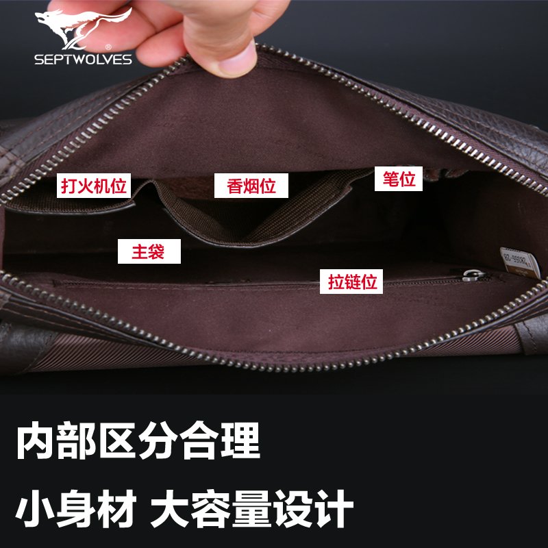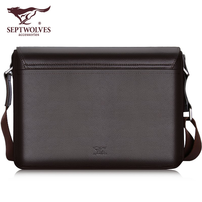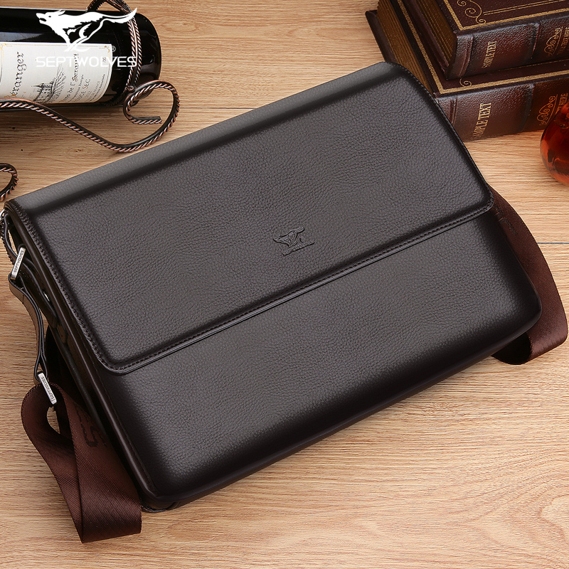Seven Wolves Men Crosswalk Single Shoulder Bag Brands Full Genuine Leather Skew Satchel Pure Headlining Bull Leather Business Brief Soft