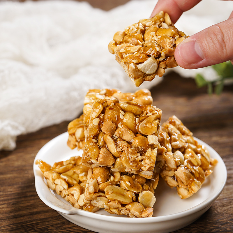 Peanut sesame sugar confectionery with oil maltose on the ground
