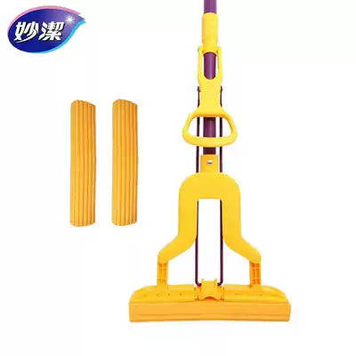 Miaojie mop Sponge magic suction folding squeeze water glue cotton mop Hands-free mop Household floor mop absorbent mop