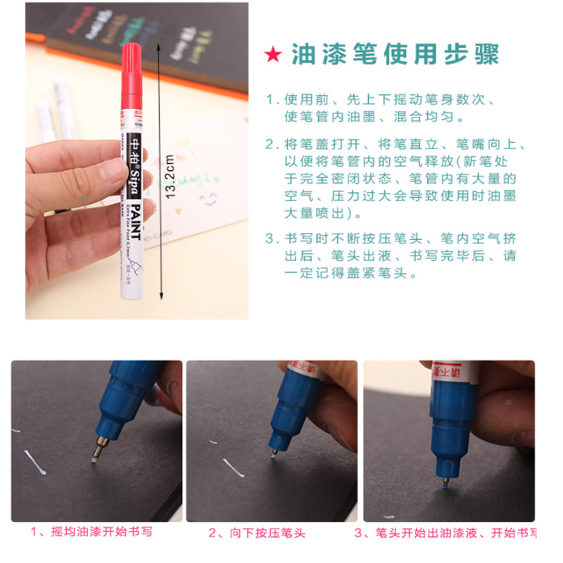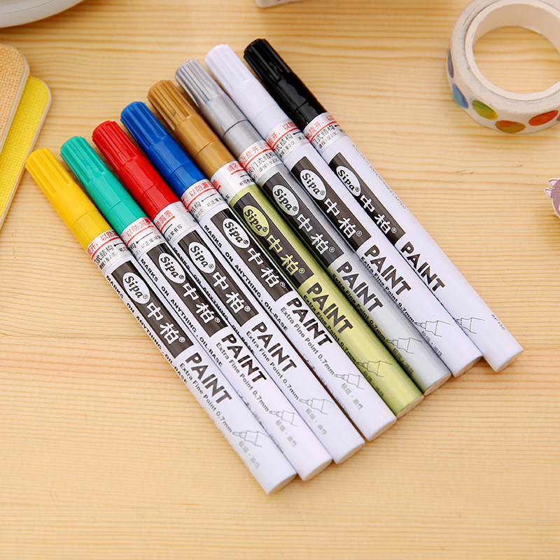 SP150 Zhongbai paint pen 0 7 very fine 8-color small head waterproof non-fading oily marker pen black diy white long-lasting non-fading graffiti tire painting shoe signature high-gloss star signature pen