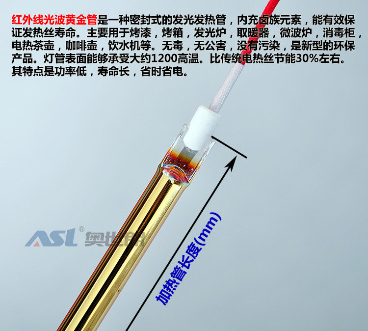 Light Wave Magnetotherapy Gold Tube Heating Tube Infrared Gilded Quartz Electric Heating Tube Gold Tube Bath Bulwara Warmer Warmer
