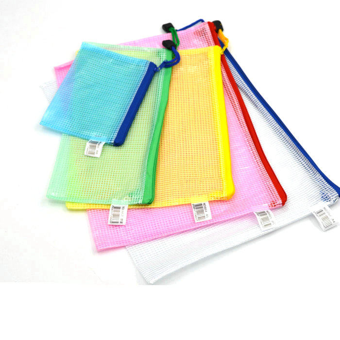 Office stationery A4 Grid pull chain bag Colour stationery bag PVC mesh bag waterproof paper bag A5A6