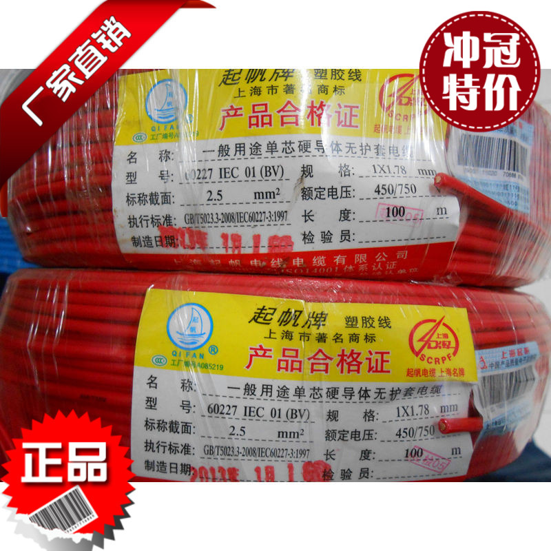 Qifan wire single core BV1 5 2 5 4 square copper core hard wire National standard direct sales project quotation can be discussed
