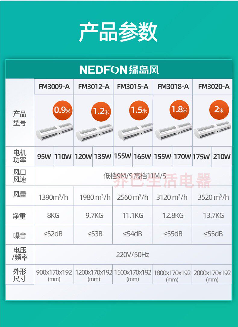 Green Island wind commercial silent air door 0 9 meters 1 2 meters 1 5 meters 1 8 meters 2 meters air curtain machine FM3009-2-S
