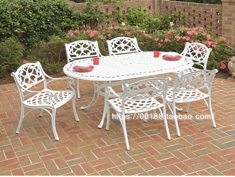 Outdoor wrought iron metal tables and chairs Outdoor cast aluminum furniture tables and chairs White garden courtyard oval ten-person table European style