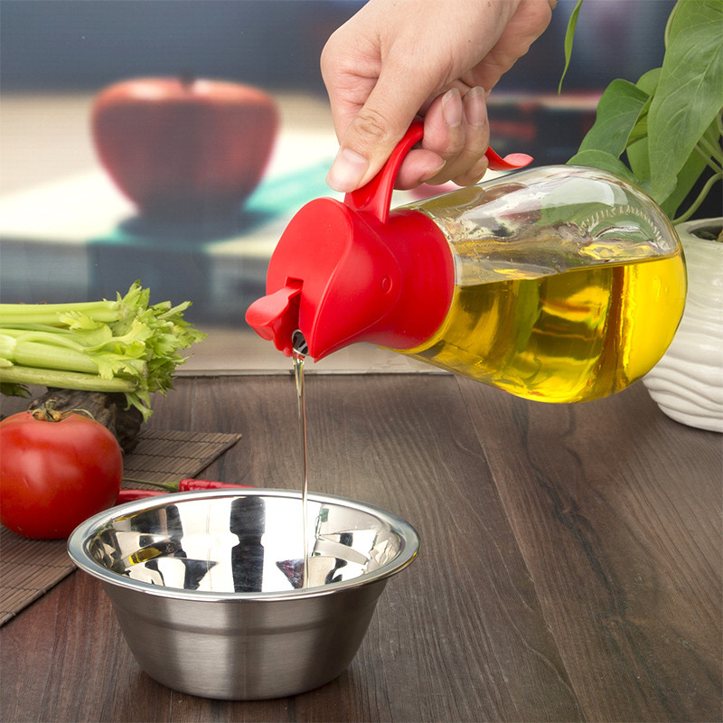 Min High Glass Oil Pot Anti-Leaking Oil Stainless Steel Soy Sauce Vinegar Bottle Oil Bottle No Oil Leak Big Automatic Open Lid