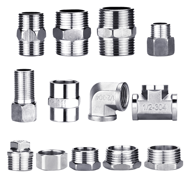 Hanxuan thickened stainless steel double outer wire Direct 4 points 6 points 15 20 inner and outer silk elbow tee gas pipe union