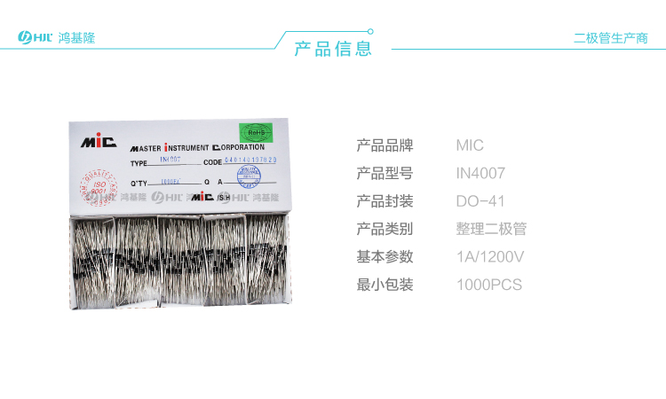MIC 4007 rectifier diode 1N4007 IN4007-52M copper foot 1 Box 1000 only 25 yuan