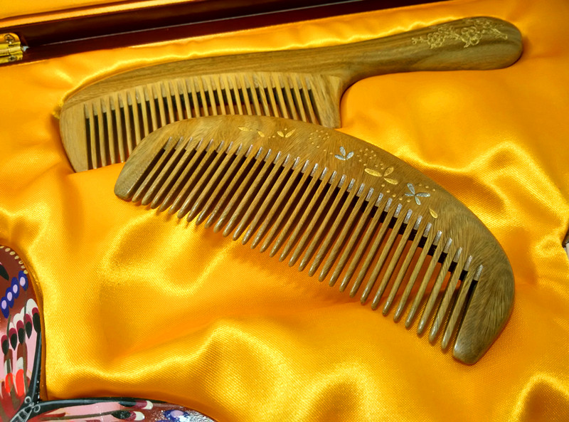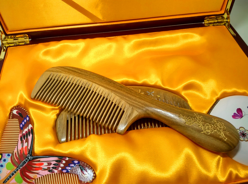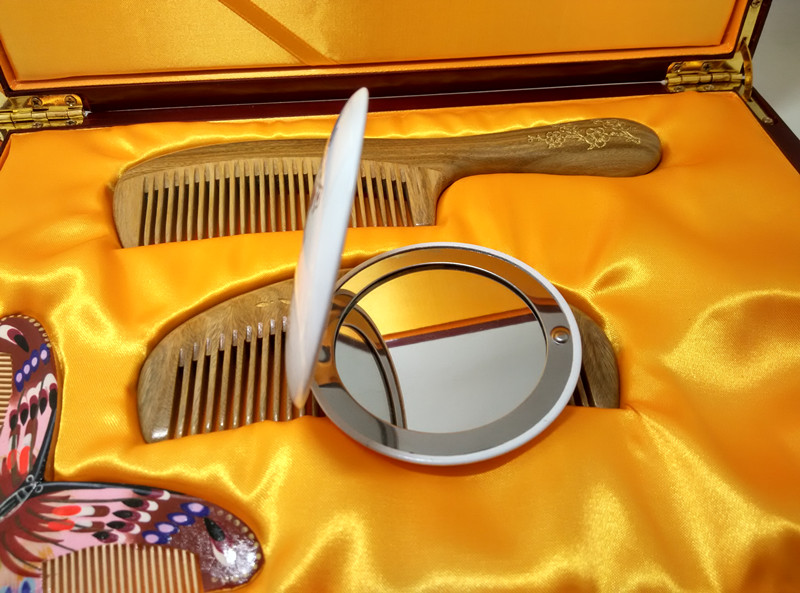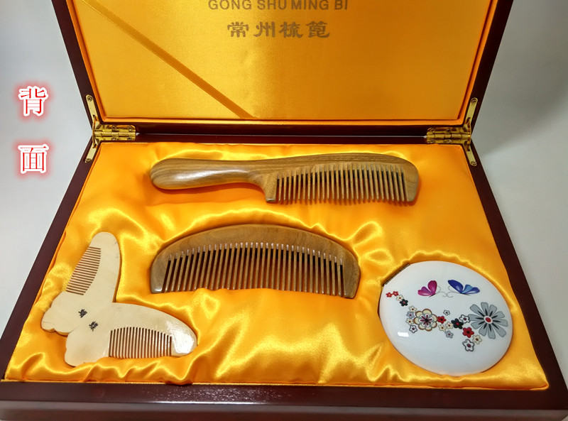 Changzhou comb grate fine carved flower wooden box set Green sandalwood butterfly mirror craft gift wooden comb free engraving