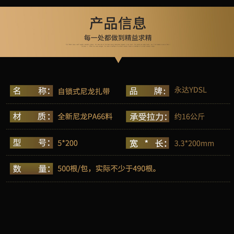 Yongda Cable tie Nylon 5*200mm3 3 Strap Plastic strap Self-locking white cable tie buckle black