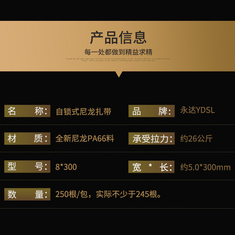 Yongda cable tie Nylon 8*300mm5 0 Cable tie Plastic advertising cloth truss Black cable tie White buckle