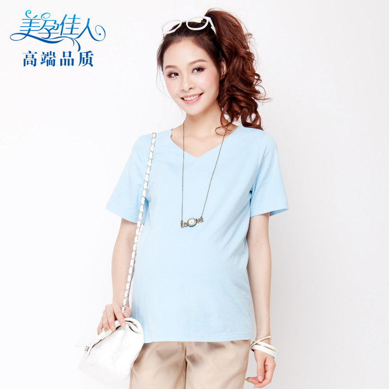 Pregnant woman summer dress Korean version fashion small V-neck pregnant woman T-shirt pregnant woman short-sleeved T-shirt pregnant woman top 1535