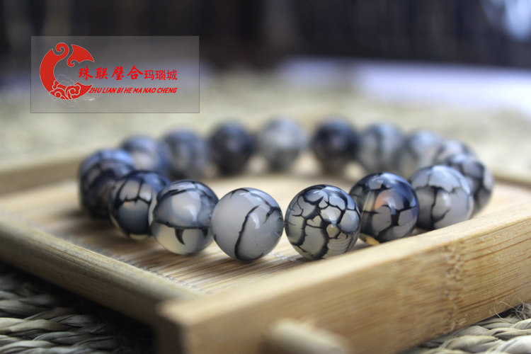 Fuxin natural gray dragon Agate hand chain hand string hand row men's jewelry wonderful gift rosary
