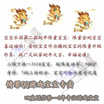 QQ Game Baby 3 10 Golden Snake Baby Limited Teng Snake 30-900 Days Valid for Spot Second Delivery