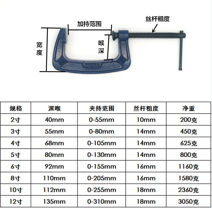 Duowei G-type clip woodworking clip G-word clip jigsaw plate clip heavy-duty fixed clip vigorously pliers malleable steel TORVi Tianjin spot