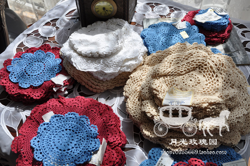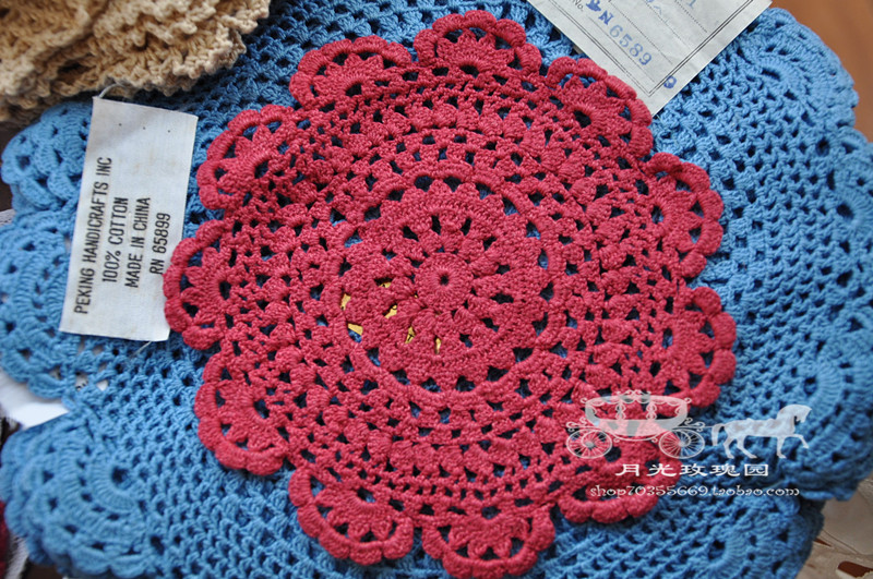 Old stock punch crown] Foreign trade original single color 100%cotton handmade crochet DIY coaster placemat