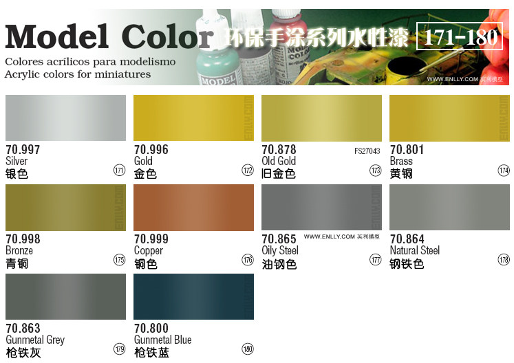 (171) silver 70997 (172) golden 70996 (173) old gold color 70878 (174) brass 70801 (175) bronze