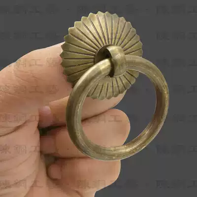 Small handle buckle drawer overall cabinet door pure copper cabinet brass drawer new Chinese wooden door single hole full copper antique