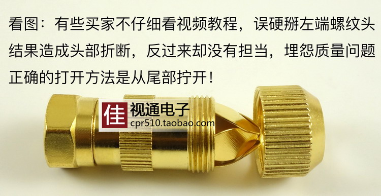 Solderless gold plated cable TV set-top box connectors bamboo joints Closed circuit RF cable plugs Thin pins Inch F heads