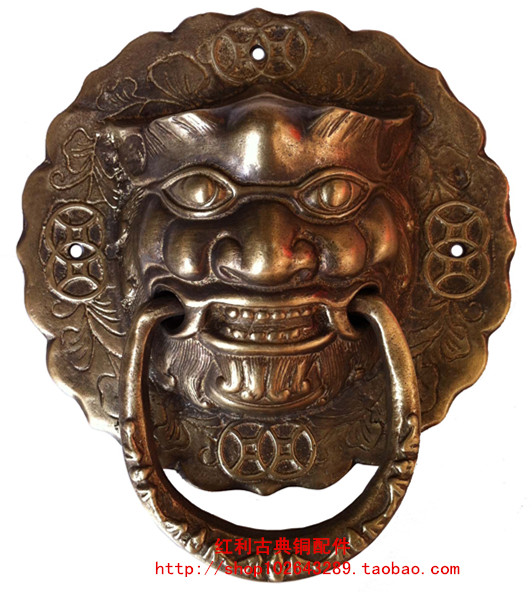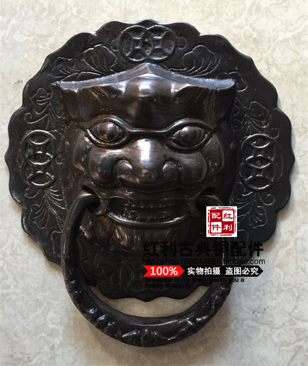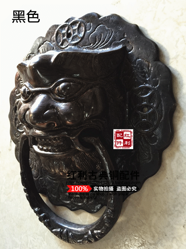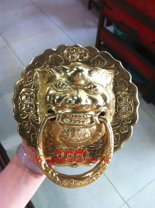 Chinese imitation ancient retro solid wood large door handle lion head handle behemoth door ring window sash door pure copper handle