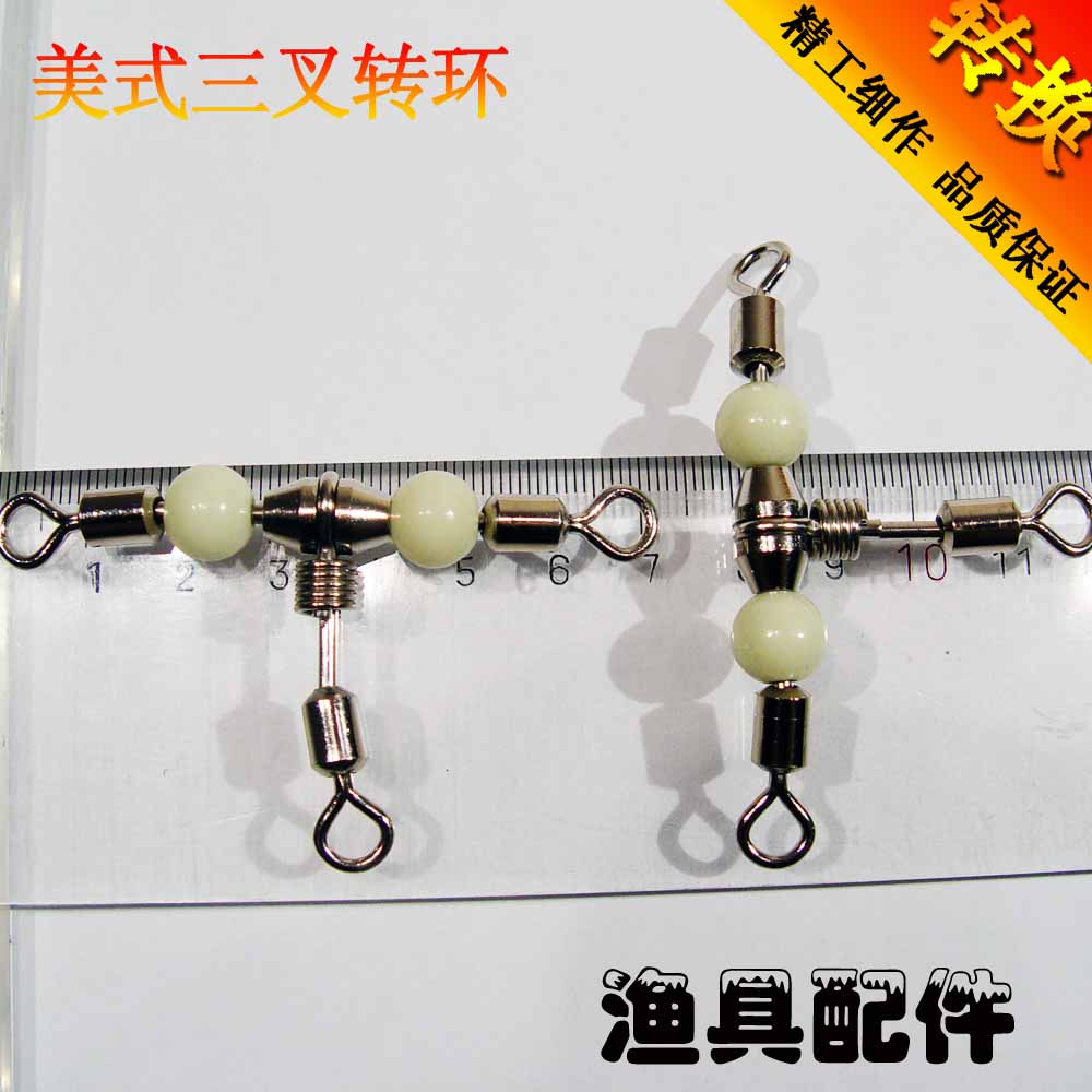 Three-way three-head three-fork swivel connector stainless steel with luminous beads parent-child conversion 2 No. 0 (large)