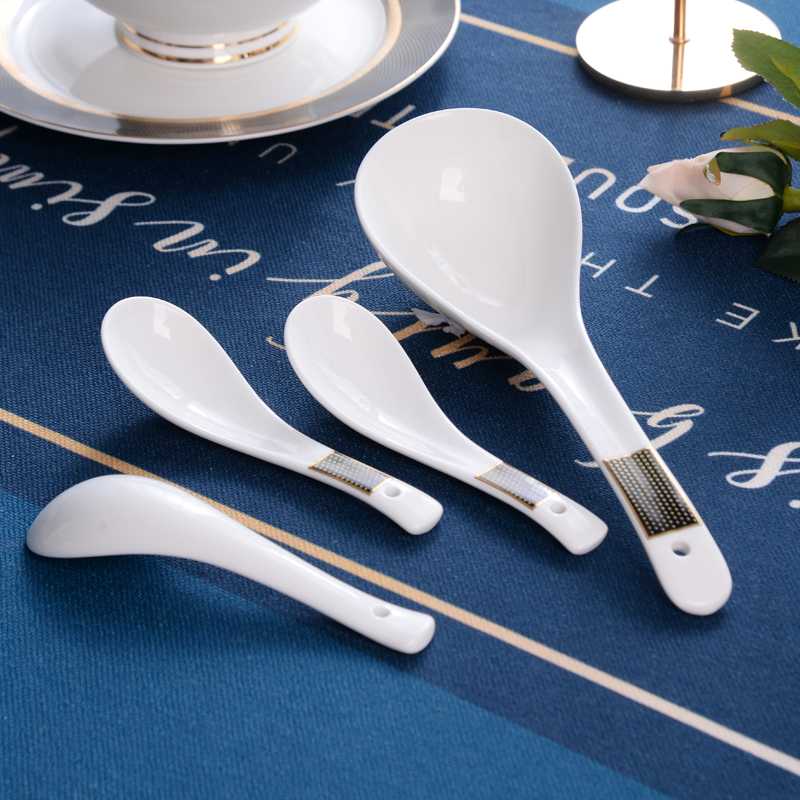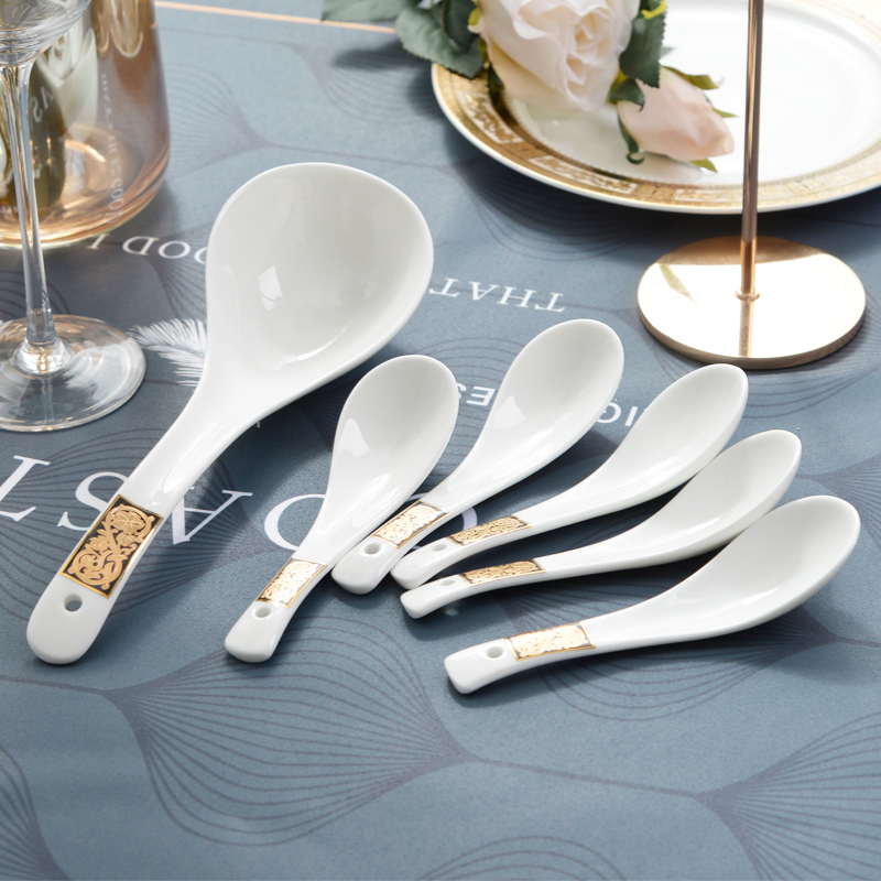 Tableware Phnom Penh bone china spoon household short rice spoon round large soup spoon long handle light luxury ceramic spoon commercial dining room