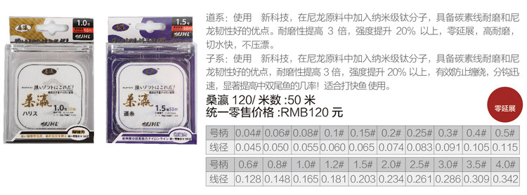 Golden Hailong Fish Line Samying Sangwon Win RMB120 Premium Main Line Subline Nylon Line Fishing Line 50 m Strong Pull Fishing Line