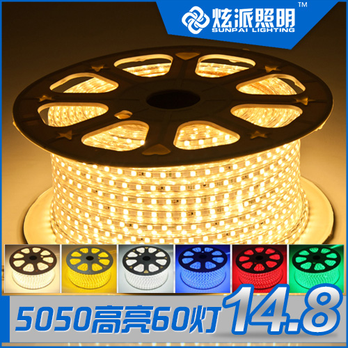 (high brightness and durable) flexible led light strip living room ceiling atmosphere 220v free wiring 5050 silicone soft light strip