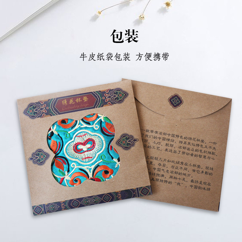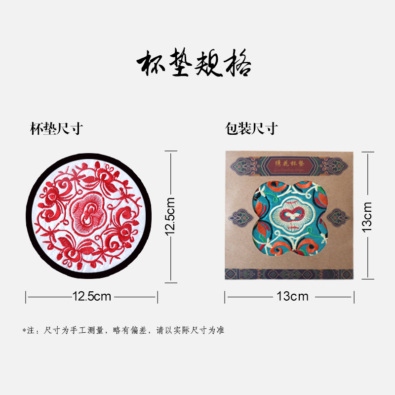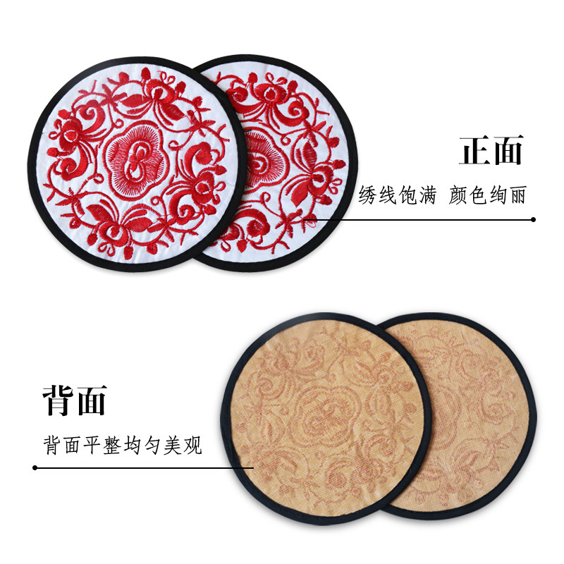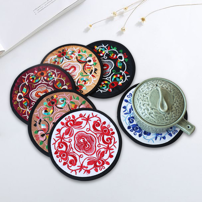 Chinese style fabric home decoration cup mat heat insulation non-slip ethnic hand embroidery ethnic style pair