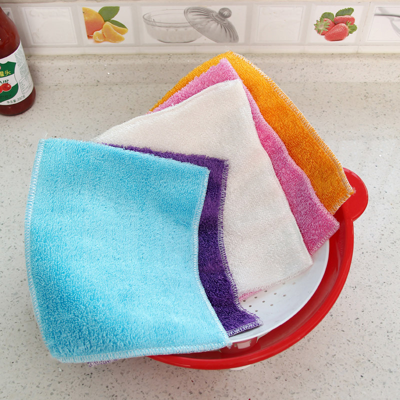 Kitchen bamboo charcoal fiber double-layer dish towel double-sided thickened non-stick oil rag absorbent scouring pad cleaning cloth