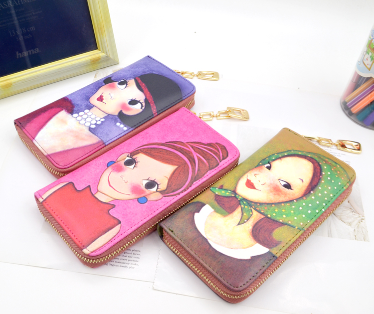 At a loss special price Korean version of the little girl retro beauty cartoon cute student zipper long version wallet card bag mobile phone bag